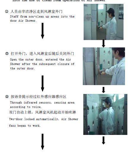 Air Shower after entering the need to close the door first and then induced to stand in the sensor area, especially the people together, and then close the door to start the air shower.