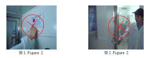 4.2.1进入风淋室前需看清里面是否有人(风淋系统工作时,不能用力使劲去推拉门,更不能强制性地将门打开,否则电锁会被损坏)<如图5>。