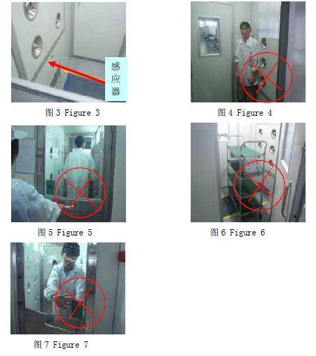 Large items such as materials cart, the cart etc. can not go in and out Air Shower (Figure 6), the need to take the other side of the door.