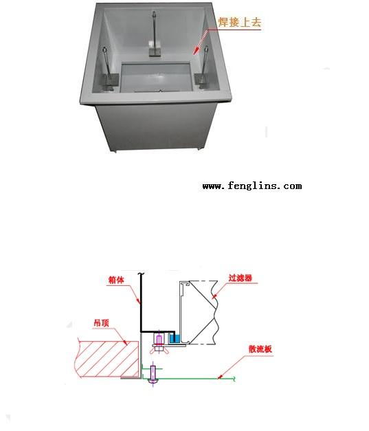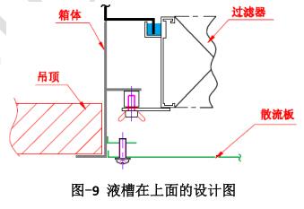 另外过滤器液槽位置的不同,也还是稍有一些差别。图-3 所示的是液槽在高效过滤器下方的设计图,液槽在高效上方的送风口设计见图-9 所示。