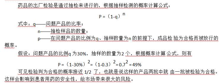 药品的出厂检验是通过抽检来进行的,根据抽样检测的概率计算公式: