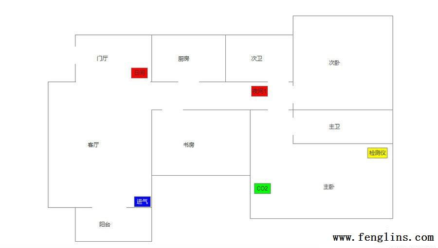检测位置 客厅距离空气净化新风机进风口最远的窗户边 下面的FFU没开机
