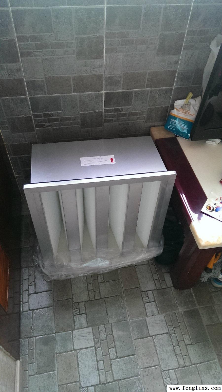 实际上 行业中 有大量的V形的高效过滤器 比I形的 进气面积更大 很容易找到了现成的产品 VVVV形的高效过滤器 可惜 这个东西不是为FFU生产的 规格不一样 是595*595的 比FFU大了 装不上 没法子 只有再次去欺骗工业领域的朋友 再次谎称我有大量的需求 但是需要样品检测 如愿用500的价格 定制到了575*575规格能套在FFU上的VVVV形高效过滤器