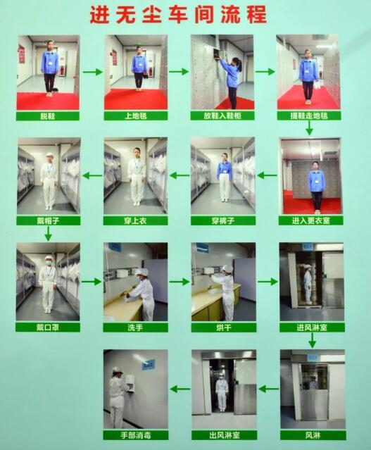 进入无尘车间的整个流程就挂在更衣室的入口处