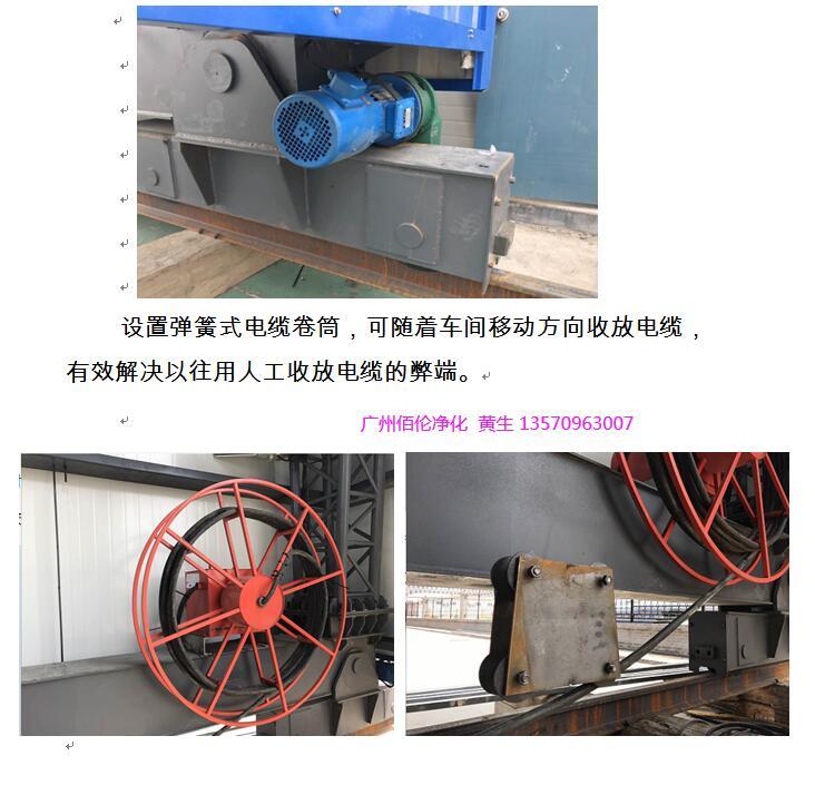 设置弹簧式电缆卷筒,可随着车间移动方向收放电缆,有效解决以往用人工收放电缆的弊端。